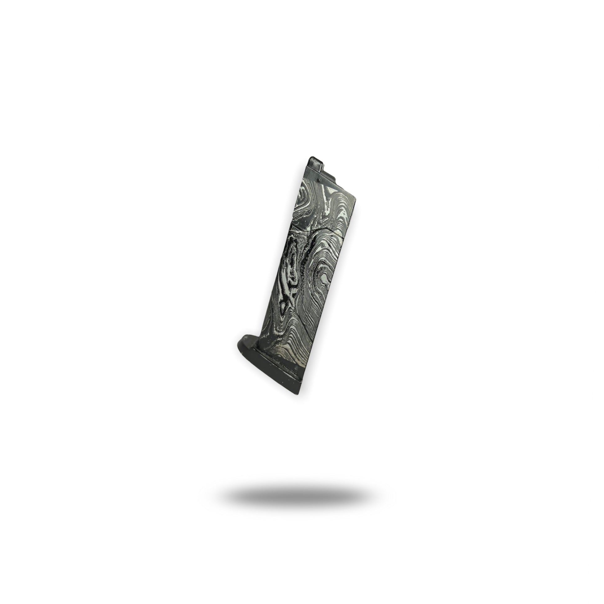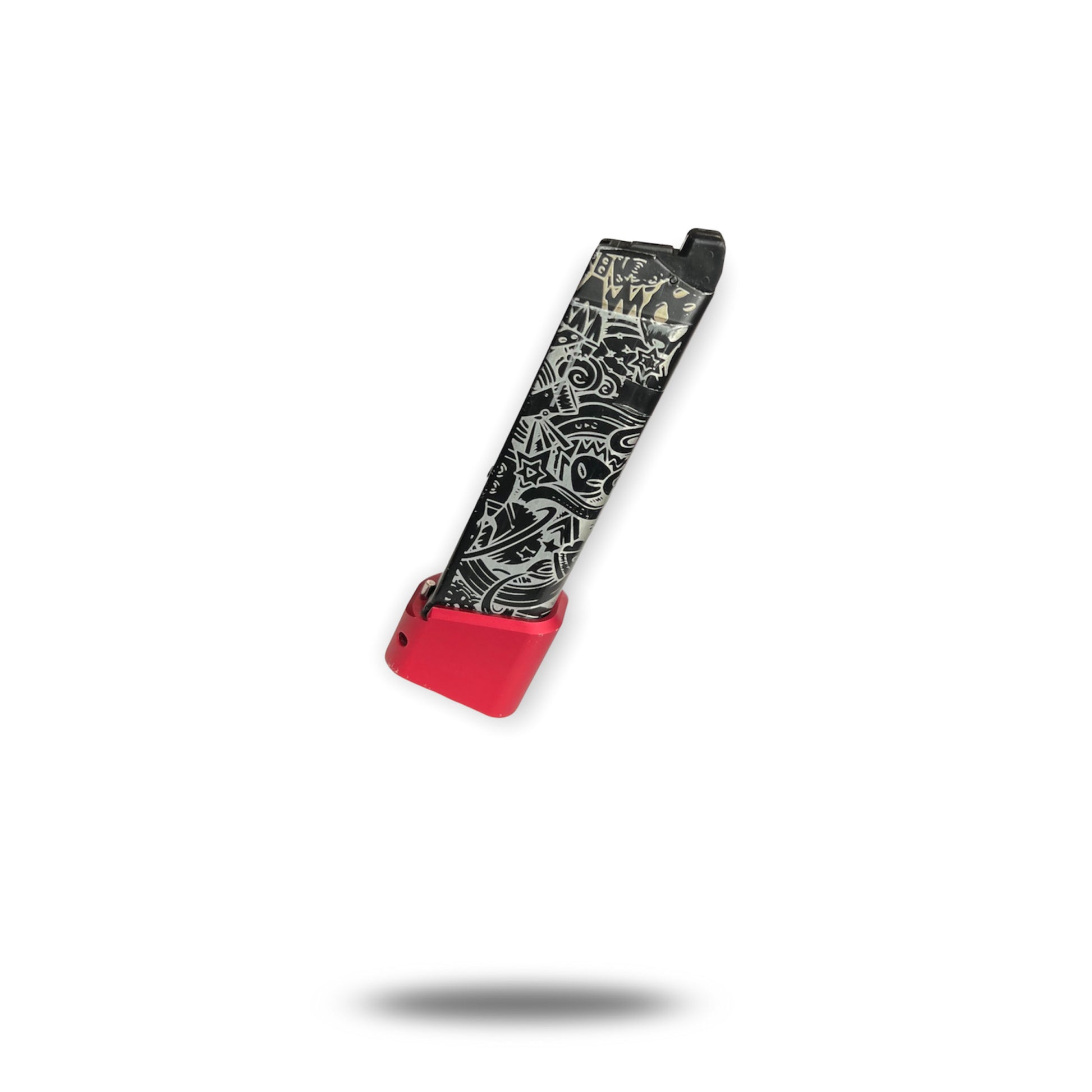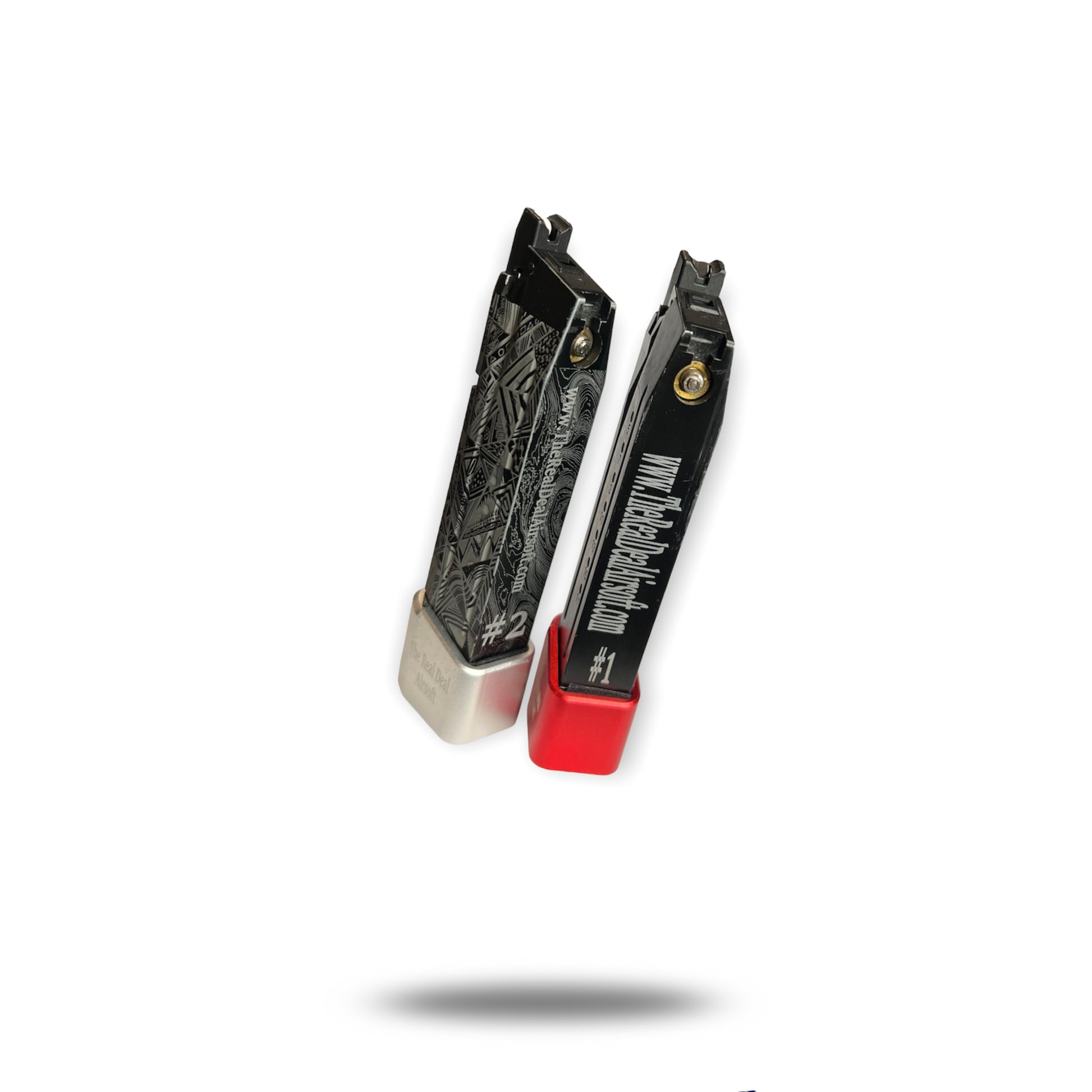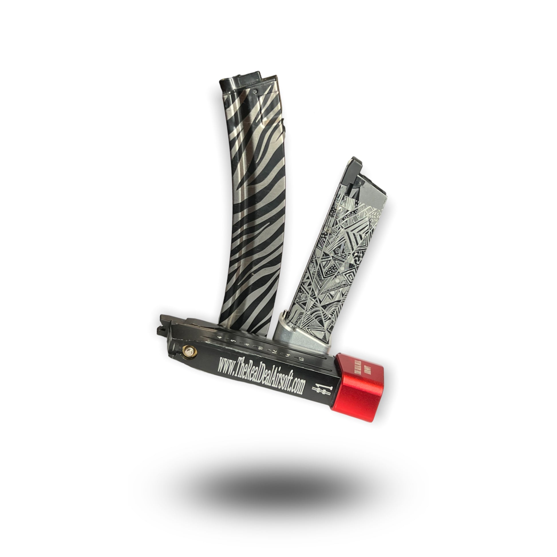 We can mark the entire length of the magazine, or specific areas. Engraving of Metal Base Plates are also covered under the service.