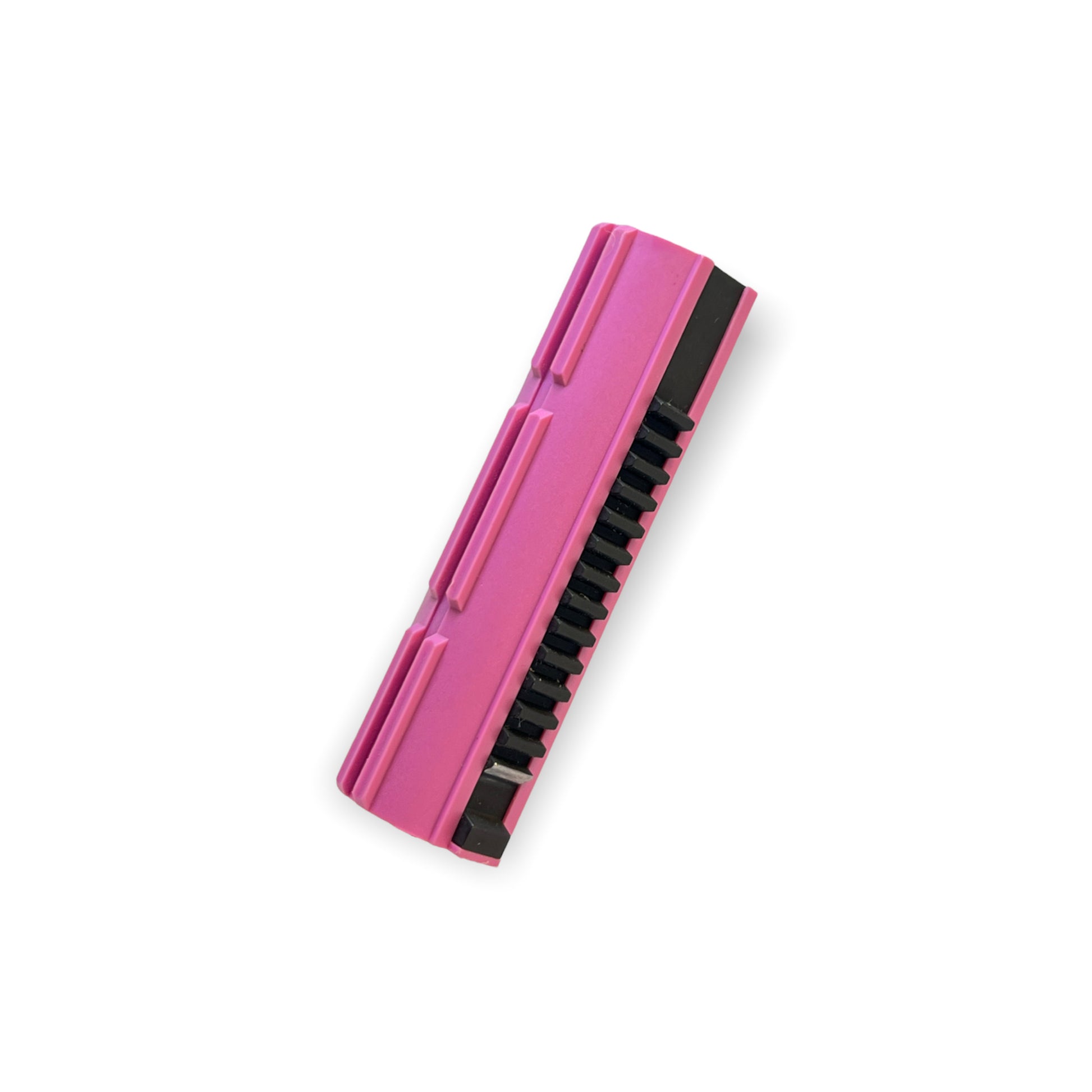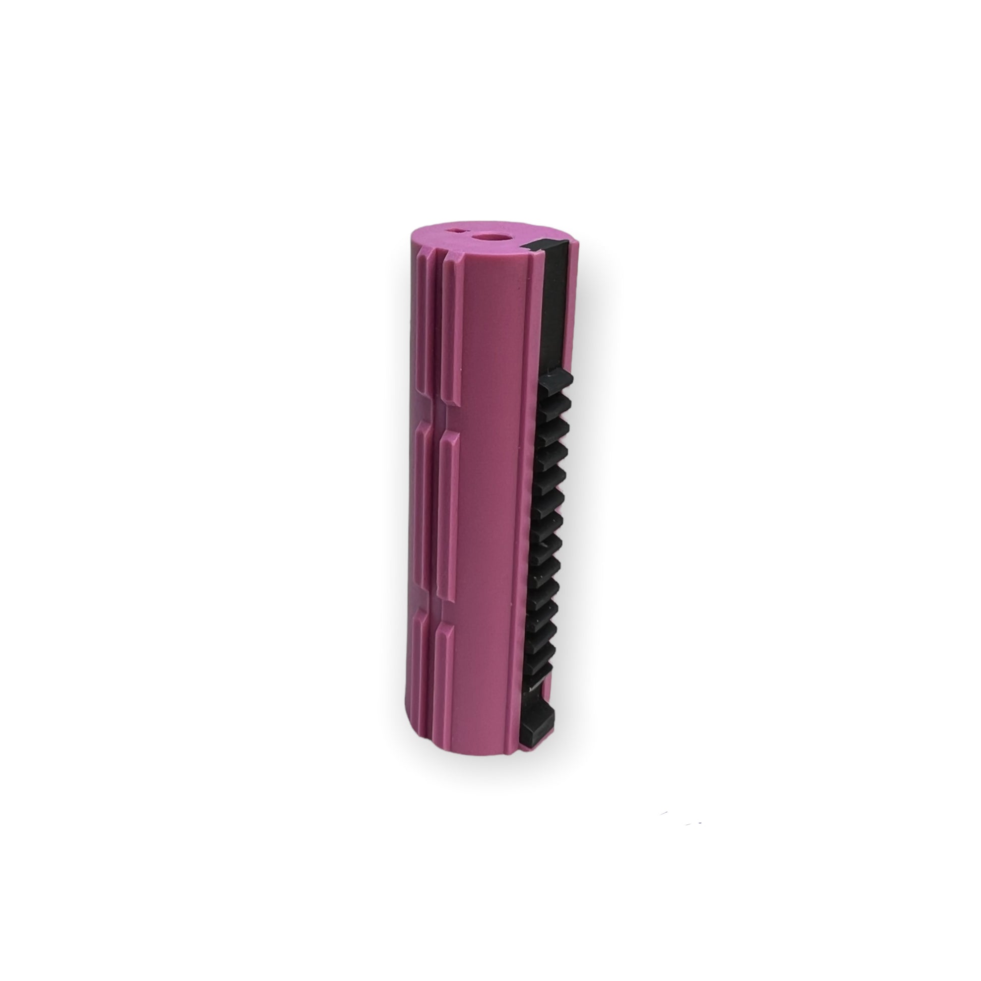 This performance piston is designed to decrease the overall stress on your internals. By correcting the angle of engagement you are significantly reducing the stress caused from high cycling AEGs, where the sector gear slams into your piston at a poor angle, or even engaging the second tooth due to improper spacing, This leads to broken teeth and worn down parts. This Piston guarantees that your sector gear will never prematurely engage the pick up teeth at a poor angle only at the correct angle. A piston with a full metal rack is a necessity in all AEG gearboxes