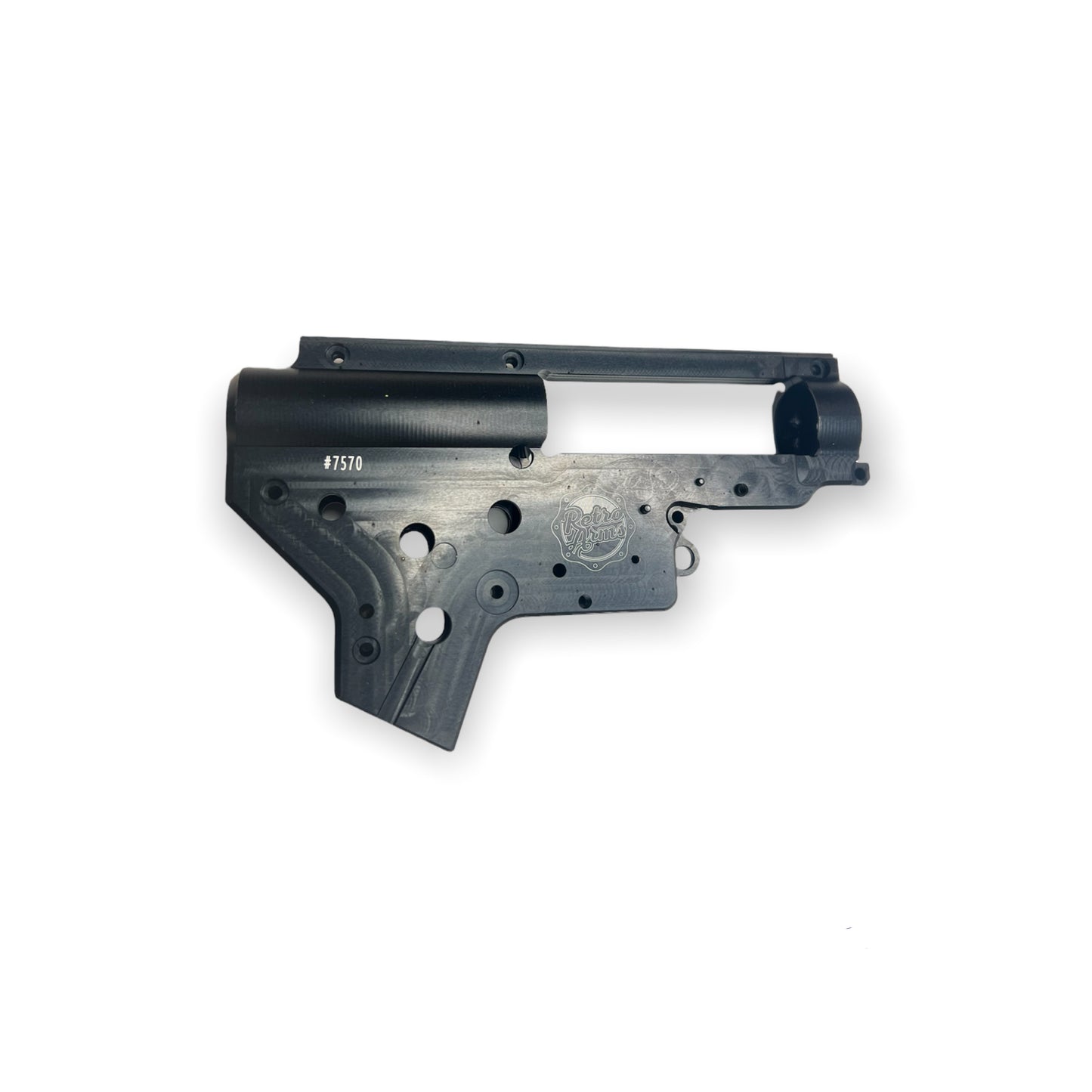 RetroArms Gearboxes are manufactured from one block of aircraft aluminum (Dural) EN AW 7075 T651, they are milled on multi-axis CNC machines,